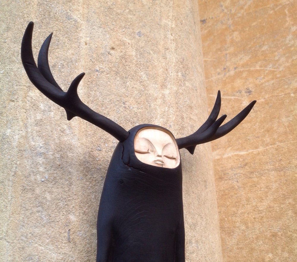 I predominantly carve oakroots which i like to collect from local woods. I love the sense of finding a new piece of wood and anticipating the potential of the form it holds inside. Carving is a way of honoring this tree especially the roots I carve. Often I can see its suggested form as I pull it from the ground. (…) Much of my work is inspired by the wood itself, the skeletal structure of Oakroot often whispers in shadows that dance and describe ancient faces. Hawthorn is very hard and tight grained allowing me to carve forms that are born from European Folklore myths and legends like the Norse Eddas, The Mabinogian and the Icelandic Sagas. This folklore is enfused into the earth where the trees have grown for millenia.