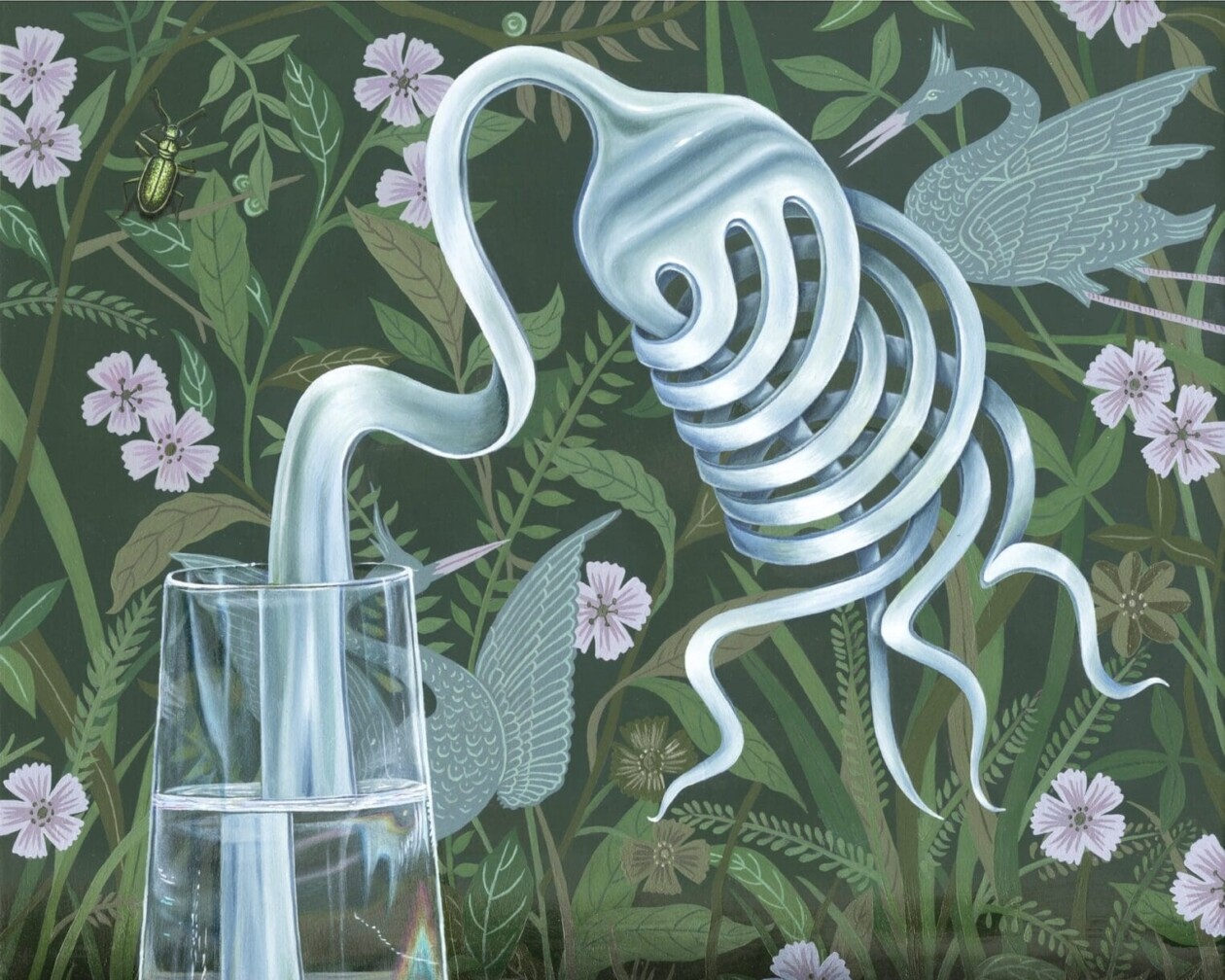 Marisa Adesman’s paintings are not your typical still lifes. While they feature familiar domestic objects – bowls of fruit, teacups, potted plants – there’s a distinct air of the uncanny about them. Adesman’s work weaves the surreal into the everyday, imbuing these quotidian items with a strange and dreamlike quality.